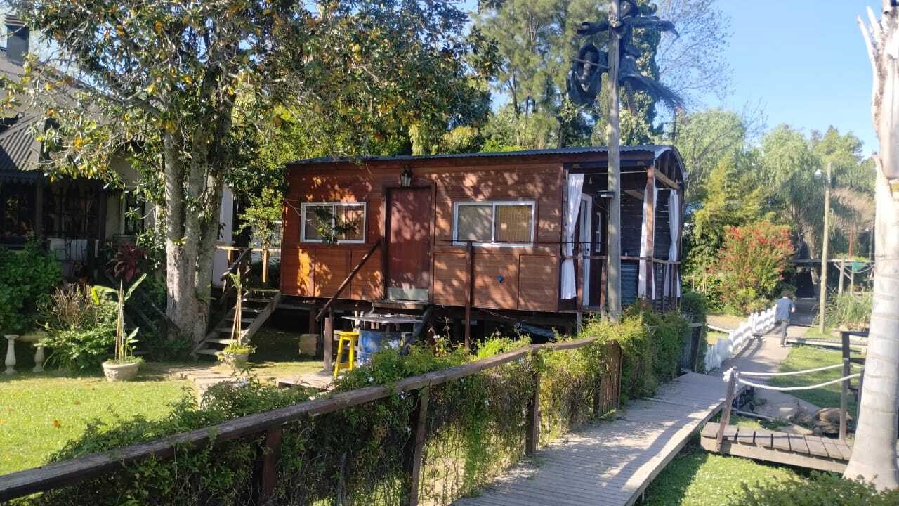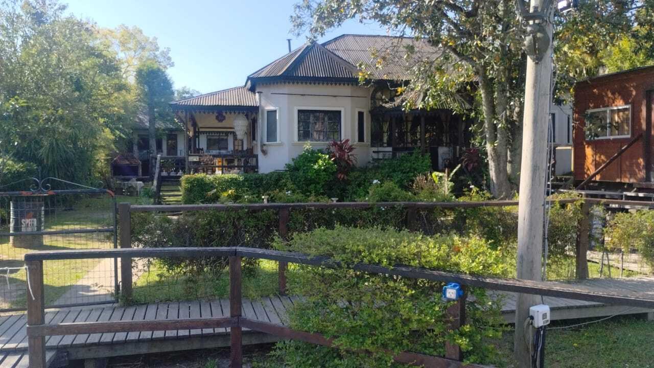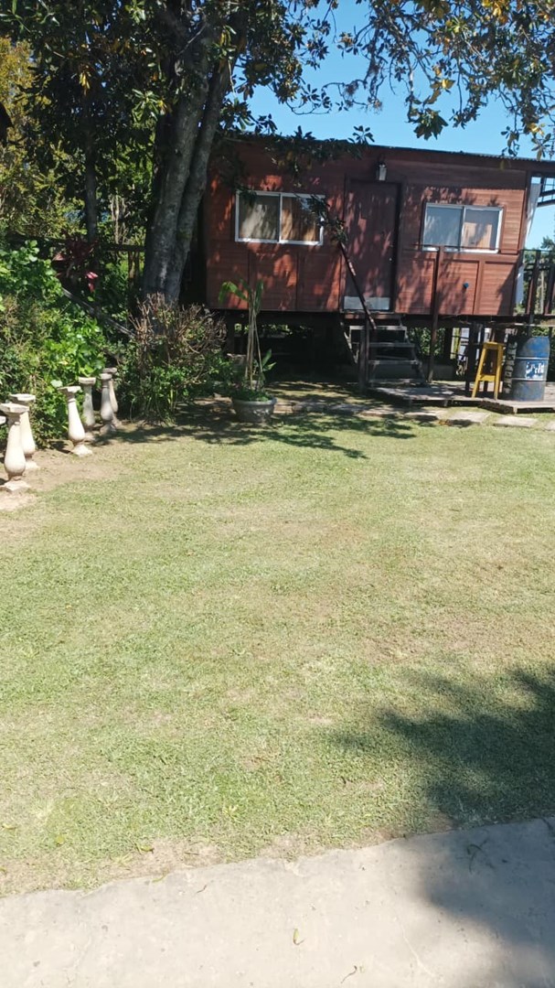 Río Sarmiento Complejo de cabañas Las Brujas Excelente propiedad sobre el Río Sarmiento. Lote: 20 metros de frente al río y 66 metros de fondo. La propiedad se encuentra habilitada como parador. Se ubica en un Río donde su fuerte es la parte turística. Ideal para emprender y a la vez usarlo de vivienda permanente por su cercanía a la ciudad. Cuenta con: . Una casa principal, de material, con un hermoso estilo. Galeria en su frente con vista al río, cocina comedor amplio, dos dormitorios amplios y baño completo. . En el frente, un monoambiente equipado para pasar la noche, al cual se le puede dar varios usos. . En la parte de atrás, se encuentran las cabañas (total 3). Construidas una al lado de la otra con una hermosa galería al frente con vista al río. Cada una con su entrada independiente, equipadas con Anafe, heladera. En planta baja cocina/comedor inegrado, baño completo, y en planta alta el dormitorio con las respectivas camas. Cada una con los servicios correspondientes, como luz, agua y gas a granel. Hermoso parque con linda vegetación y pileta con solarium. El frente está protegido con estacada de madera. Muelle en buen estado. Es una propiedad que vale la pena verla. Ideal para alguien que quiera emprender y a la vez vivir de manera permanente. El río Sarmiento es una de los más turísticos, ya que pasan las lanchas de paseo por ahi. Servicios: Luz, gas a granel y agua de río. Traslados: Se accede con lacha propia o por lancha colectiva que sale desde la Estación Fluvial. Al ser cerca d el ciudad, el recorrido no es muy largo, serán 30/40 min. Hermosa vista y alrededores.